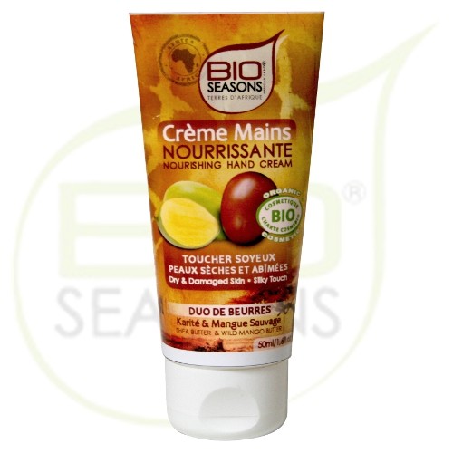 De handcrème (tube) is voor de droge of de beschadigde huid, op basis van karitéboter en wilde mango. Bijna 50% van de ingrediënten is afkomstig van biologische landbouw; 99,3% is van natuurlijke oorsprong.