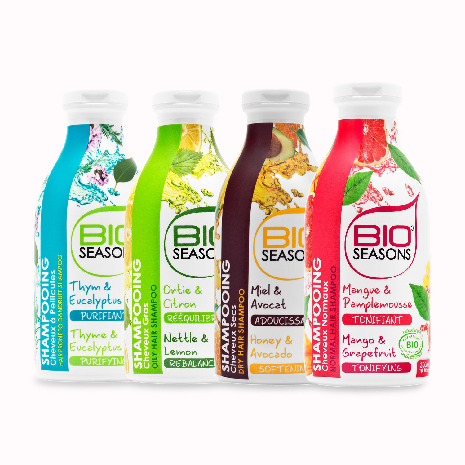 Born to Bio Shampoos zijn beschikbaar in 4 soorten: anti-roos, voor vet haar, droog haar en voor normaal haar.